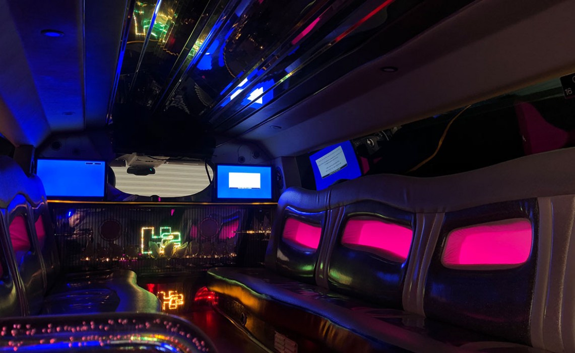All our vehicles are loaded with customised high-spec lighting and surround sound for your comfort. All our cars have Fibre optic and LED colour-changing ceilings and bars; some have colour-changing floors.